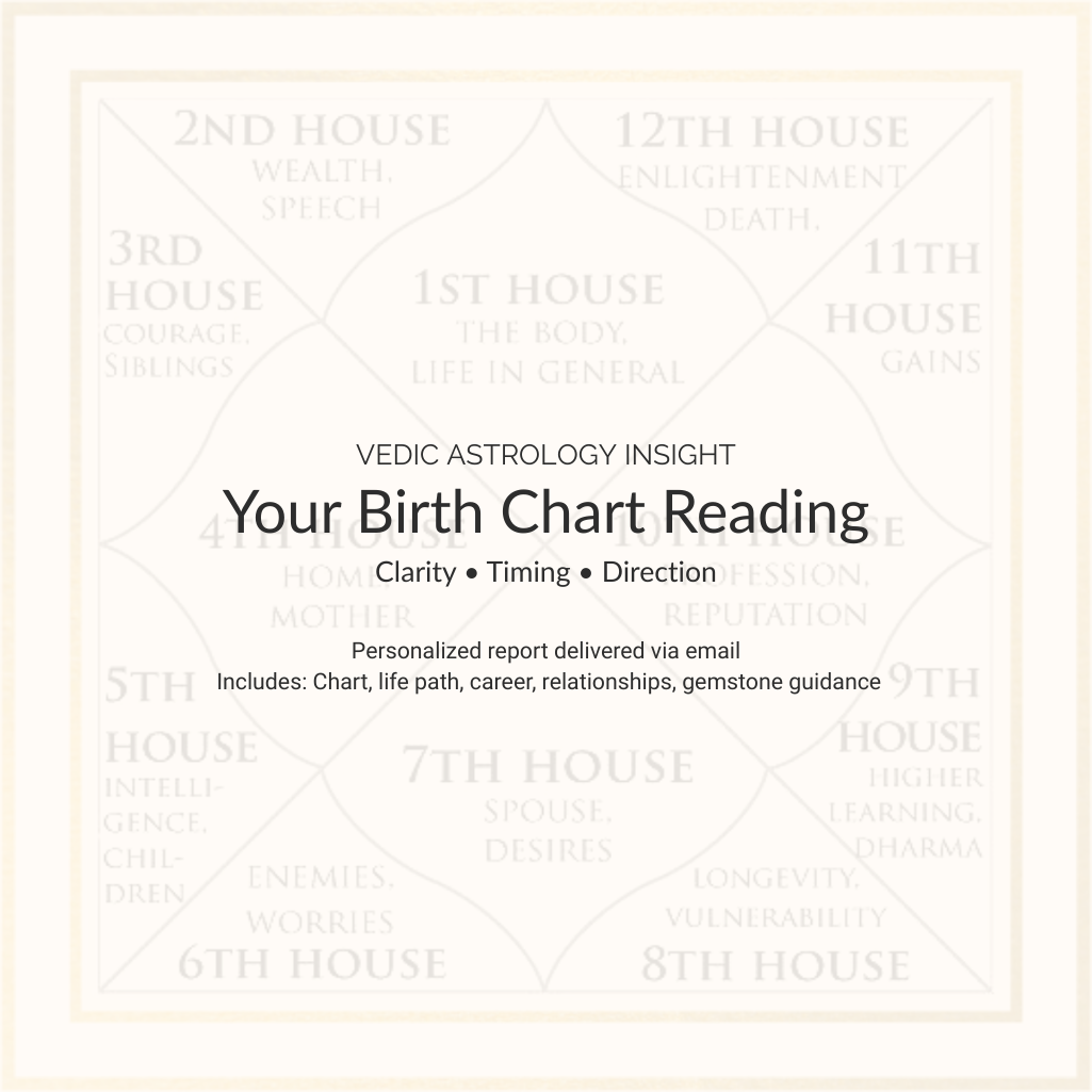 Each piece is crafted for energetic alignment, using your Vedic chart to support your current planetary cycles and long-term path.